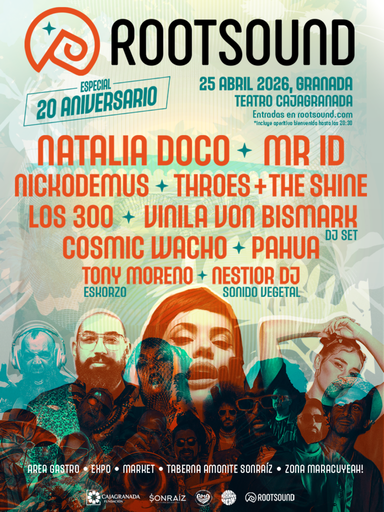 The event will bring together on stage artists from the Americas, Europe and North Africa, reflecting the cultural diversity that defines today’s global scene and the Rootsound agency itself. The line-up includes Natalia Doco (Argentina), Mr. ID (Morocco), Nickodemus (USA), Pahua (Mexico), Throes + The Shine (Portugal), Los 300, Cosmic Wacho, Vinila Von Bismark (DJ Set), Tony Moreno (Eskorzo) and Nestior DJ (Sonido Vegetal). .